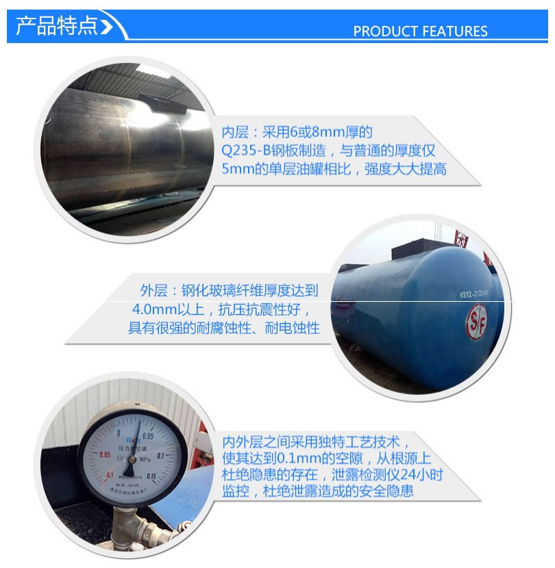 產(chǎn)品詳情 加油站雙層油罐的外殼以強化玻璃纖維為主要材料,這種材質(zhì)的化學性質(zhì)相對穩(wěn)定,可在很大的程度上降低油罐被腐蝕的速度…